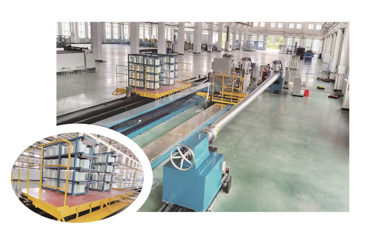 通過巧妙設計了雙向弧形吐紗系統,解決了聚氨酯復合材料桿塔纏繞角度小、用紗量大、超長度以及樹脂固化快等關鍵技術難題。